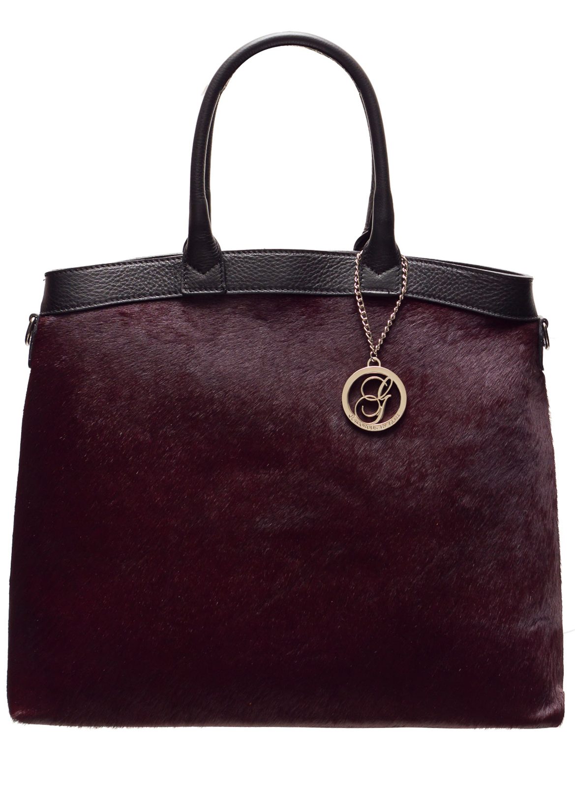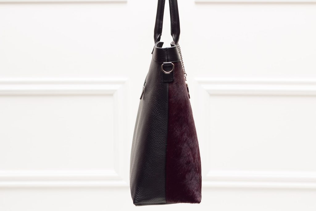 Dámská luxusní velká kabelka se srstí ve vínové barvě. Jedná se o ojedinělý kousek :-) Kabelka je celá kožená, krátká poutka pro nošení v ruce. Kabelka má zapínání na zip, a vejde se do ní formát A4. Zajímavým doplňkem je u poutka stříbrné logo Glamorous by Glam. Vhodná k nošení v ruce a hodí se do města i do práce. Součástí kabelky je i přídavný track.