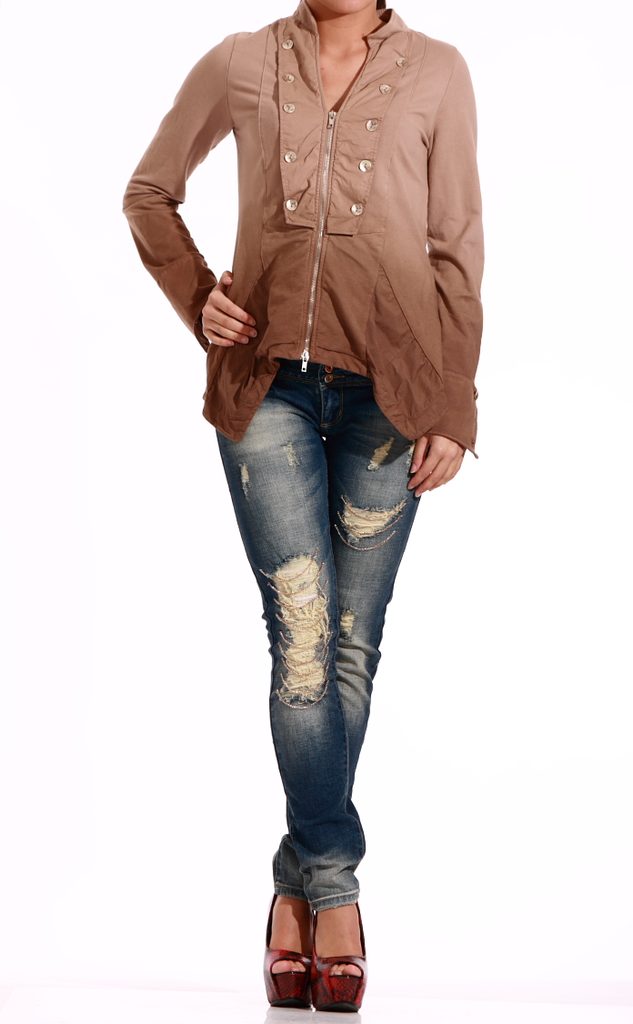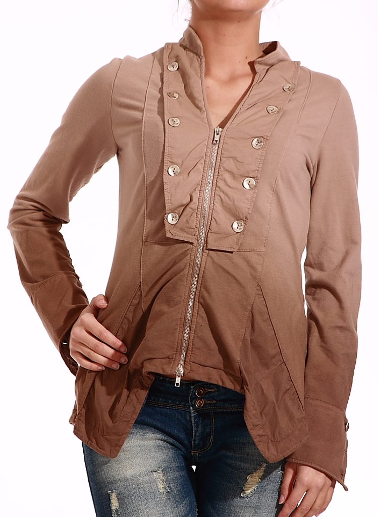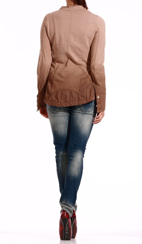 Dámské hnědé sako. Atypický střih, s dlouhým rukávem, příjemný materiál. Vhodné ke sportovnímu outfitu.