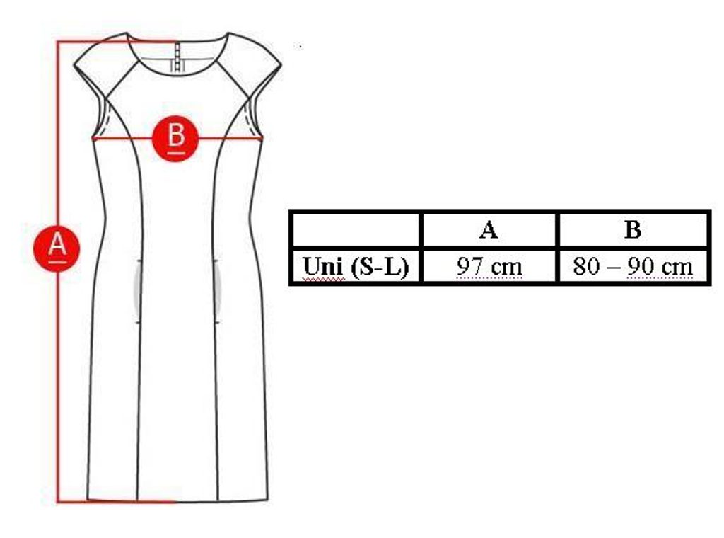 Modelka má na sobě velikost Uni (S-L) a její míry jsou: 85-60-90 při výšce 171cm.