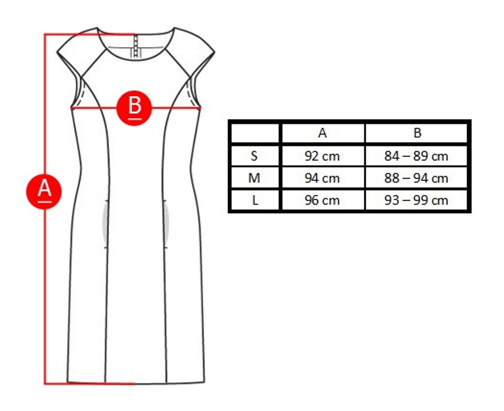 Modelka má na sobě velikost S a její míry jsou: 85-63-89 při výšce 171cm