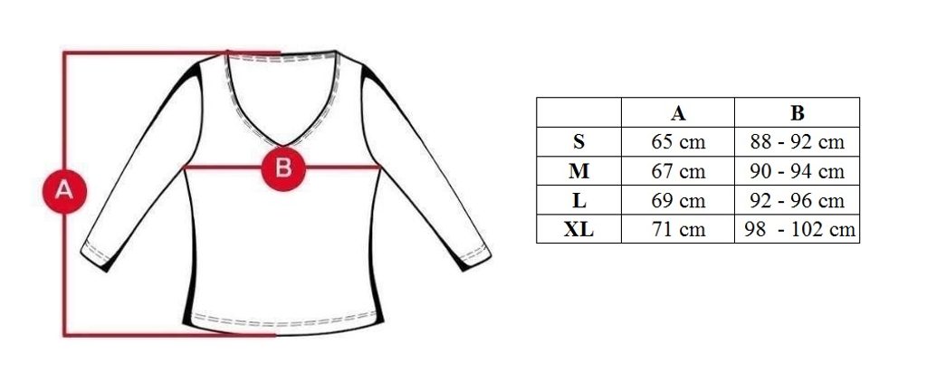 Modelka Taťána Makarenko má na sobě velikost S při výšce 175 cm a její míry jsou 88-58-88